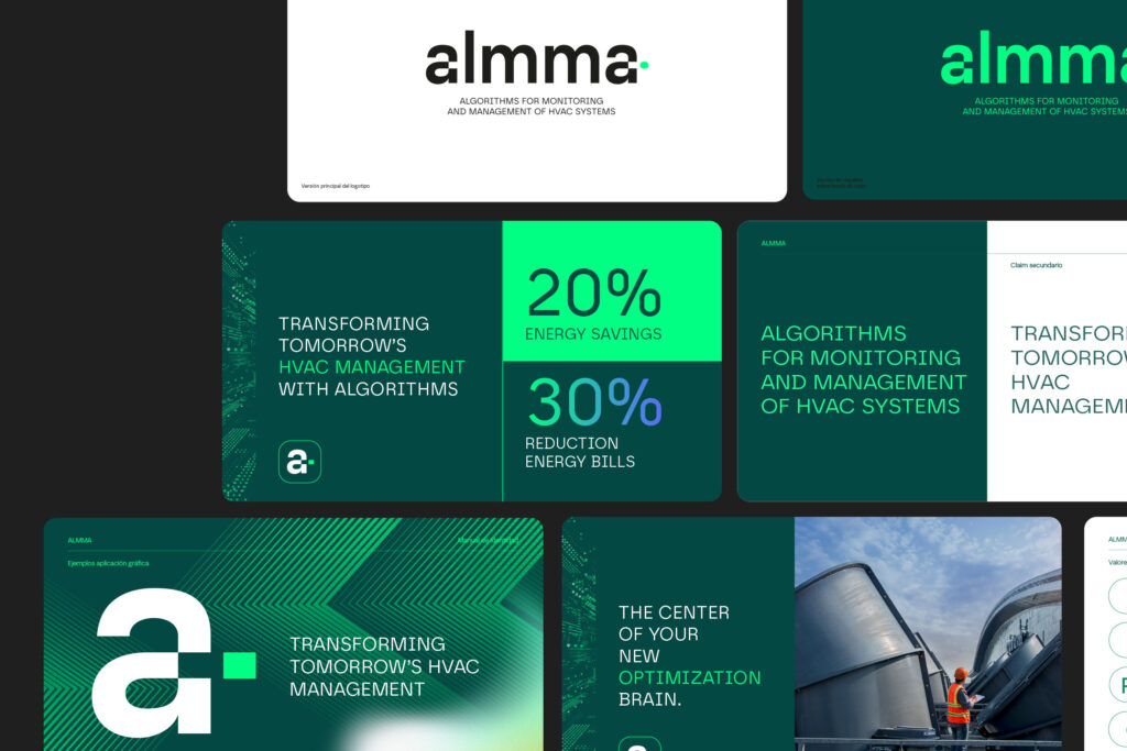 El branding de Almma acompaña la evolución del sector energético hacia modelos más inteligentes, conectados y responsables. Una marca que habla de optimización, de control avanzado y de cómo la investigación puede convertirse en impacto real para la industria y el planeta.